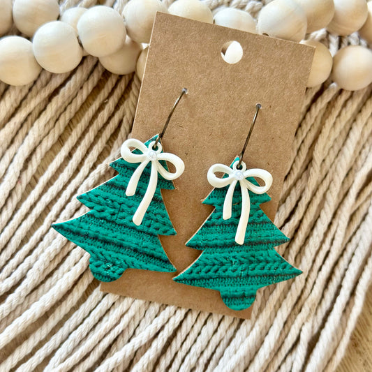 Green Sweater Print Tree with White Bow