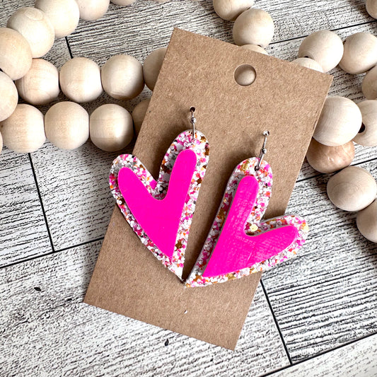 Neon Pink Glitter Stacked Hearts
