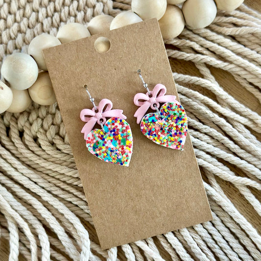 Tiny Heart Hot Pink Glitter Wire Hoops
