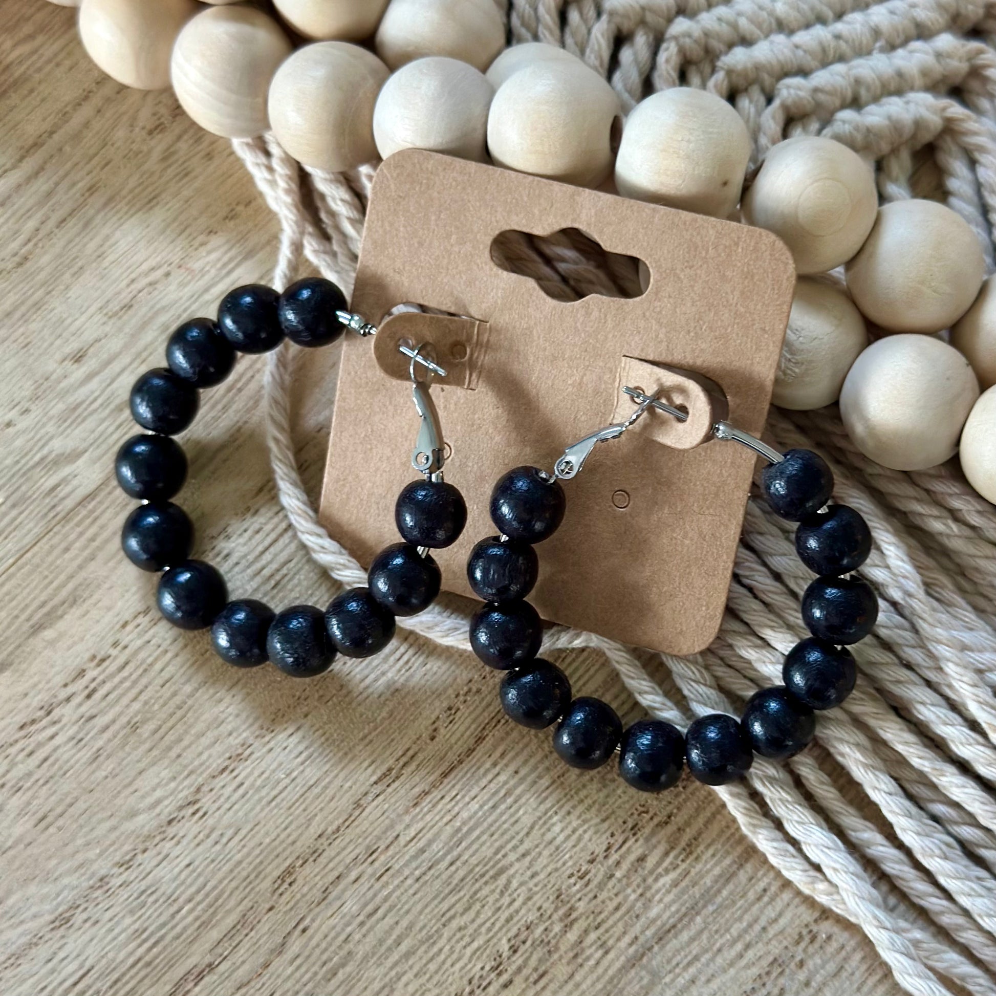 Black Beaded Hoops